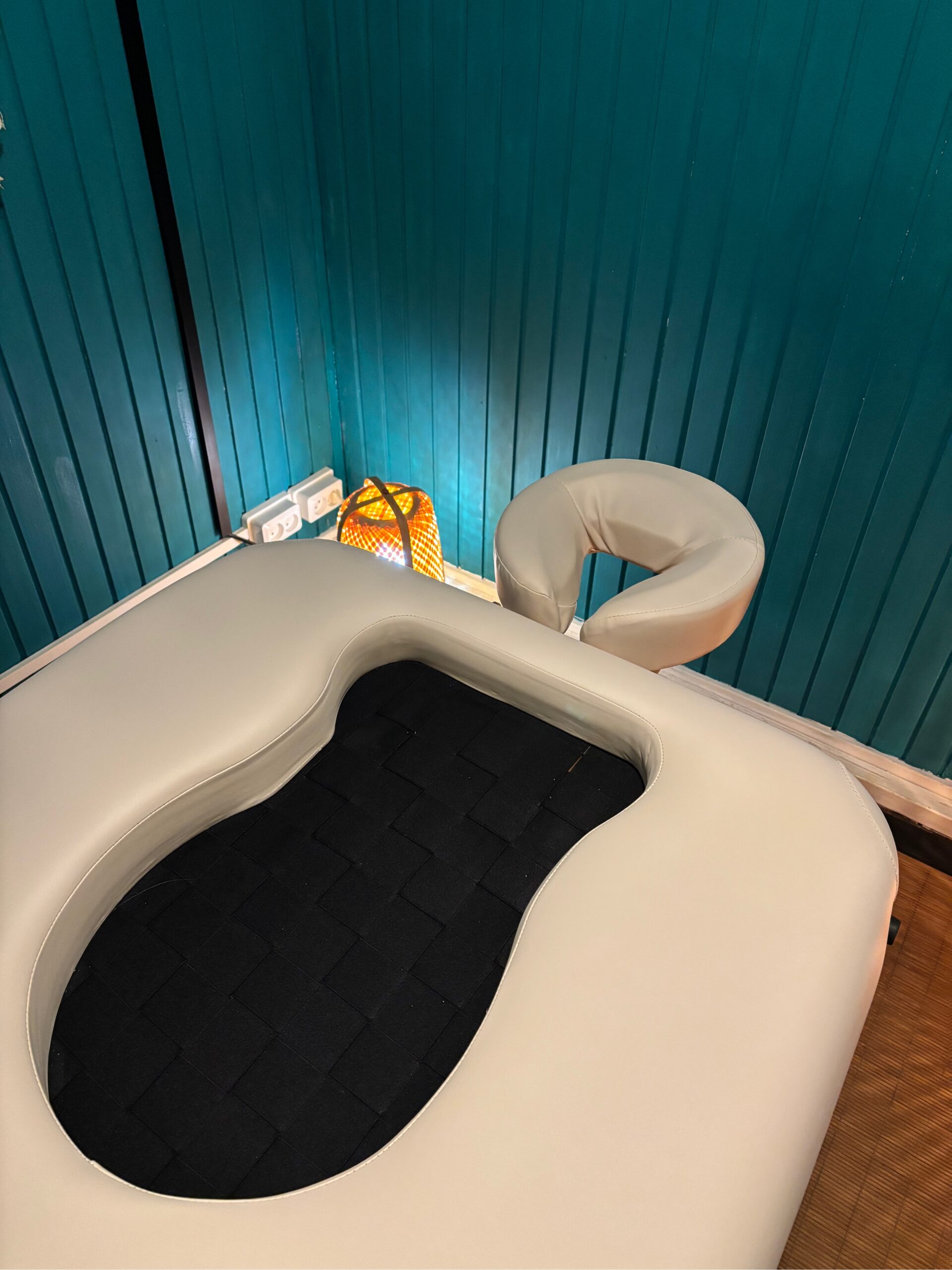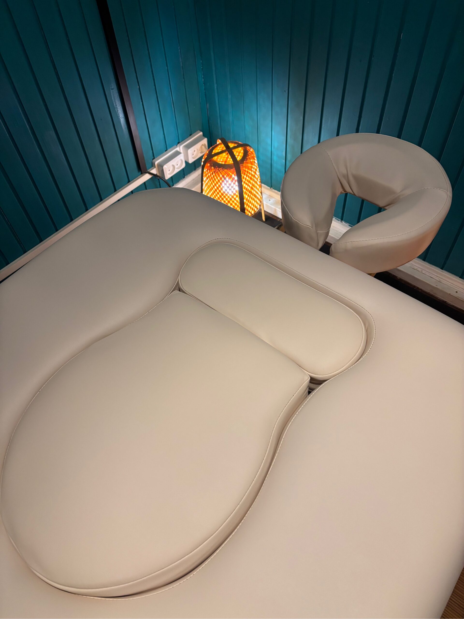 妊婦さんを施術する際は、お腹と胸のクッションカバーを外し、